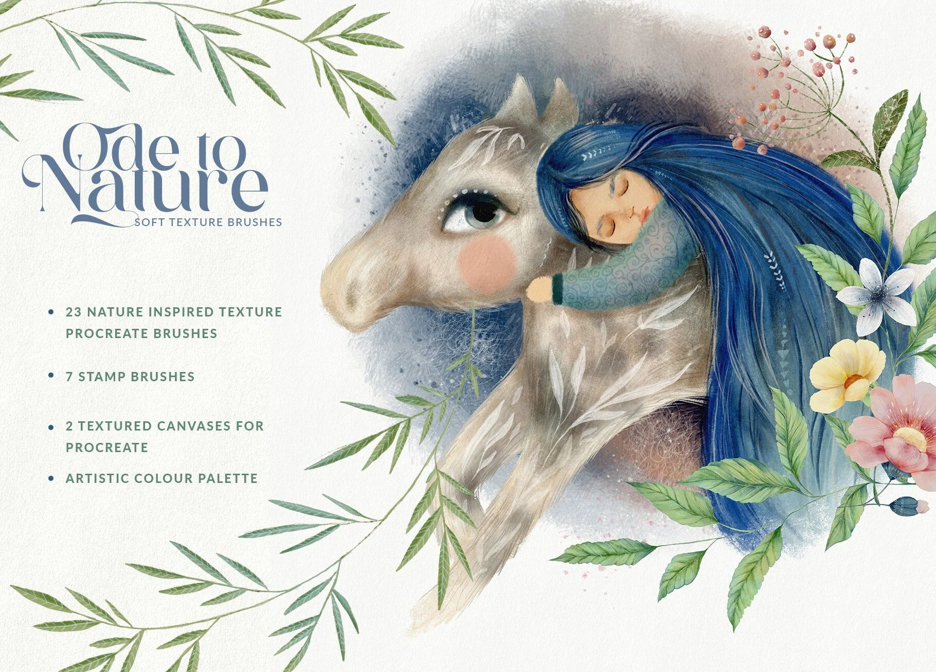 Nature is an endless source of inspiration for me. Change of seasons, weather, rhythms of the year and wildlife has always been a magic world for me. I’ve created this set of textured brushes thinking of natural materials, mountains, stones and rocks, as well as green foliage and fluffy animal fur. The colour palette is inspired by warm spring days, it comes as a little extra, together with a step by step video tutorial on how to paint a very cute whimsical fox in Procreate. Hope you enjoy the set as much as I have!